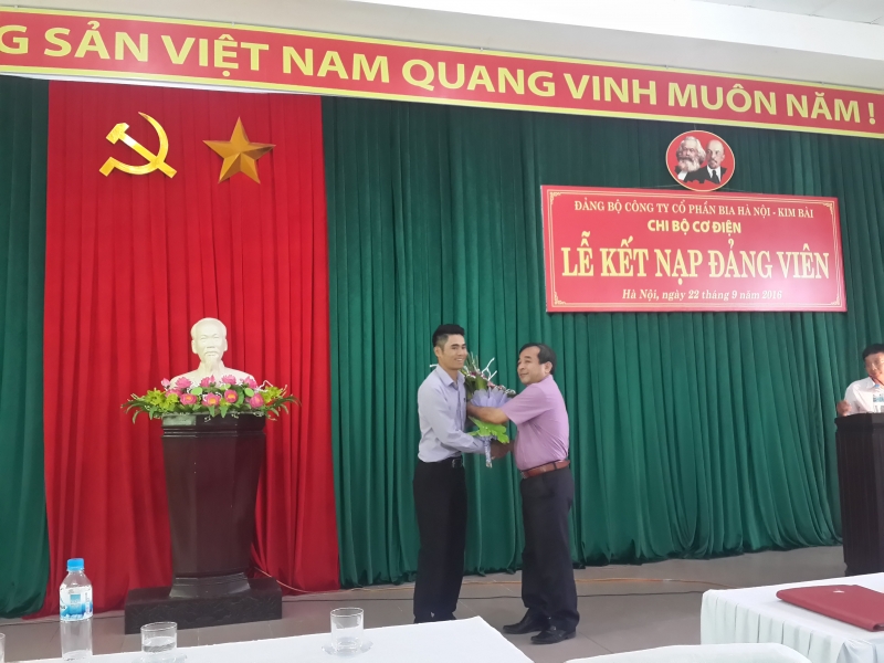 Ngày 22 tháng 9 năm 2016,tại Hội trường Công ty : Đảng bộ Công ty cổ phần Bia Hà Nội - Kim Bài - Chi Bộ cơ điện đã tổ chức lễ kết nạp Đảng viên mới cho Đồng chí Hà Như Quân. Tham dự buổi lễ kết nạp có Đồng chí Lê Văn Chỉnh - Bí thư Đảng ủy Công ty, các đồng chí trong Cấp ủy và các đồng chí Đảng viên trong công ty.